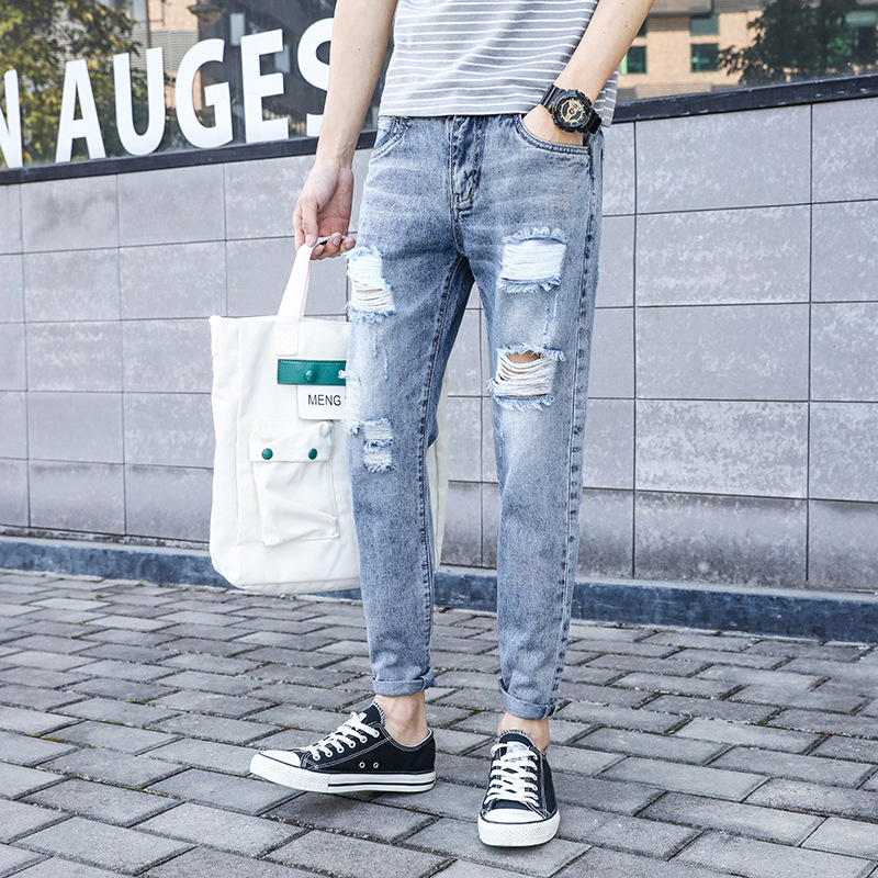 Seluar Jeans Men Seluar Jeans Lelaki Koyak Autumn New Style Youth Korean Slim Beggar Jeans Men S Ripped Cropped Pants Se Shopee Malaysia